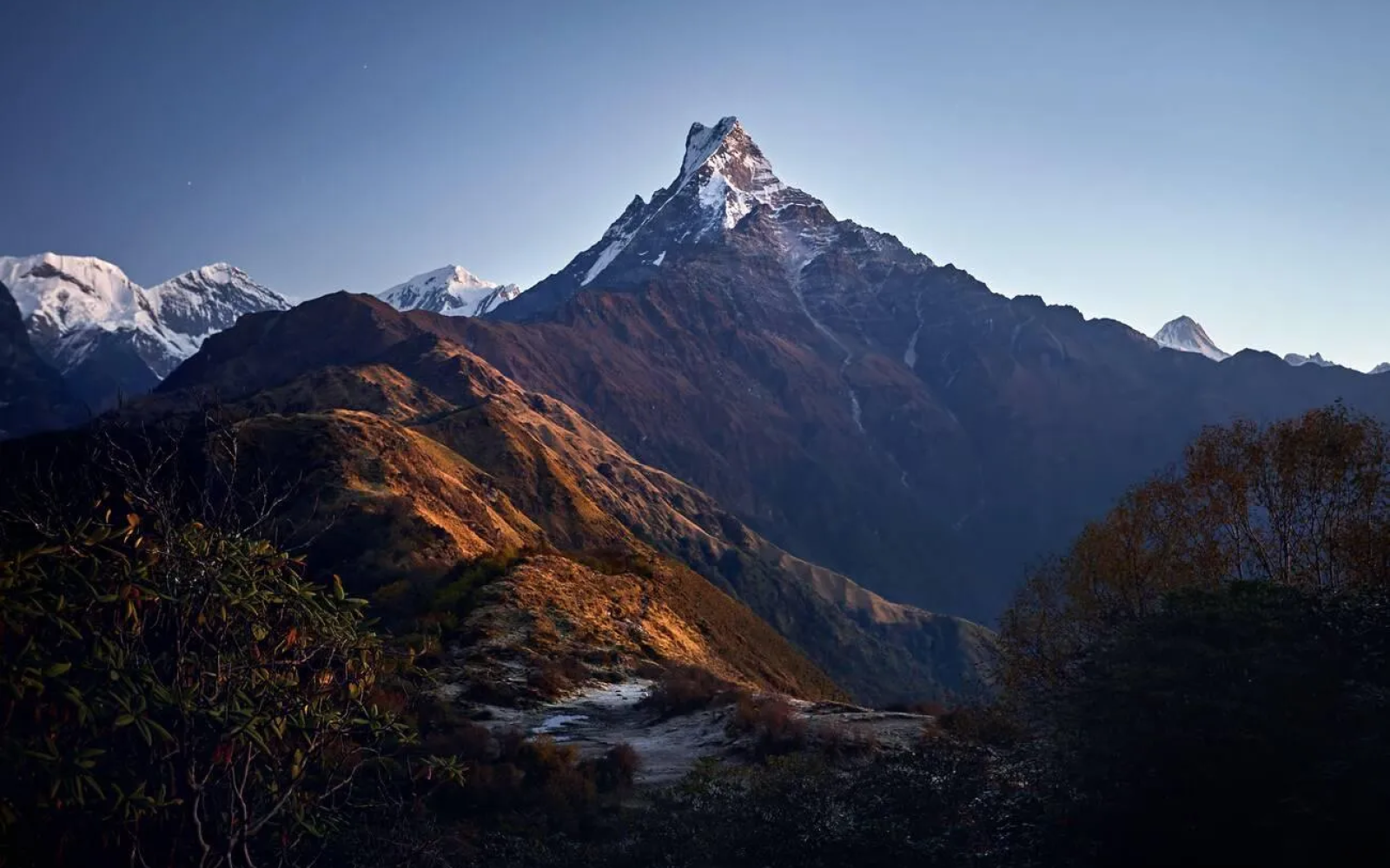 Forest Camp is surrounded by some of the most breathtaking natural attractions on the Mardi Himal Trek. The Mardi Himal Peak itself, towering at 5,587 meters (18,323 feet), dominates the skyline and serves as a primary highlight for trekkers. Alongside this, the iconic Machapuchare (Fishtail) Mountain and Annapurna South are visible from various points around the camp, providing postcard-perfect scenery at sunrise and sunset.